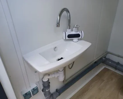Este módulo sanitario de 3×3 metros trasciende el concepto de caseta, constituyendo una unidad higiénica de alto estándar. Su diseño inteligente separa la zona de ducha del inodoro, optimizando el espacio y permitiendo un uso simultáneo, una ventaja poco habitual en módulos de estas dimensiones.