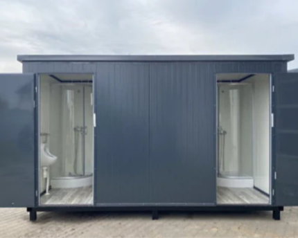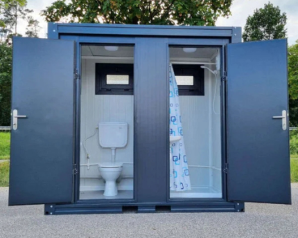 Es la solución idónea para obras de larga duración, eventos al aire libre que requieren servicios con ducha (como festivales, ferias o rodajes), o como ampliación de instalaciones existentes.
